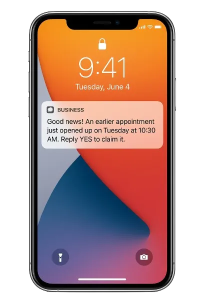 Want an earlier appointment? Text EARLY to (your Solidap number).